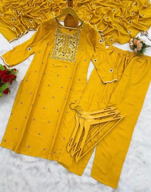 Rayon Women Kurti With Dupatta & Bottomwear